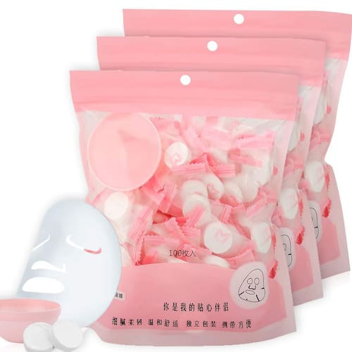Existem 300 peças de máscaras faciais comprimidas. Três pacotes, cada pacote tem uma pequena tigela de máscara. A máscara comprimida a seco é feita de algodão não tecido natural, não contém nenhuma composição química, sem fragrância química, que é hidratação saudável e confortável. O tipo saco de doces pode ajudá-lo a economizar muito espaço. e conveniente para levar, grreat para viagens. Modo de utilização: Aviso: Esta é uma máscara comprimida a seco. Ele não tem a loção, siga as etapas abaixo para você mesmo sua máscara. 1. Retire uma máscara e coloque a máscara em uma pequena tigela. 2. Coloque loção suficiente na tigela pequena. 3. O papel da máscara está completamente encharcado. 4. Coloque-o no rosto, ajuste a área dos olhos, nariz, boca 5. Desfrute de reidratação da pele silenciosamente por 5 a 10 minutos. 6. Retire-o, massageie suavemente até completamente absorvido. - 3 sacos/300 peças no total. A máscara é de papel de máscara facial comprimido seco, não há produto facial embutido no papel. - Você precisa adicionar um produto facial adicional (como líquido de beleza, leite, xarope) na tigela da máscara quando você usar. - Absorvente e forte, descartável, cuidando da pele facial sozinho ou salão de beleza. - Confortável e saudável, feito de algodão não tecido natural -- não contém composição química. sem adição química, sem fragrância química, ótimo para mais tipos de cuidados com a pele. - Embalagem individual, economiza muito espaço e é conveniente para levar, ótimo para viagens.