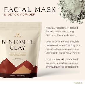 A bentonita natural de origem vulcânica (argila de cura indiana) tem uma longa história de usos terapêuticos. Carregada com íons minerais, é frequentemente usada como uma máscara facial refrescante para limpar profundamente os poros e deixar a pele rejuvenescida! Observe a pele mais macia, poros minimizados, menos fugas e uma aparência geral equilibrada. Instruções da máscara de lama facial: Misture argila com partes iguais de água ou vinagre de maçã. Mexa bem a mistura até formar uma pasta lisa. Adicione mais argila ou líquido conforme necessário. Aplique uma camada de 1/4 a 1/5.1 cm para limpar a pele. Deixe secar por 5-10 minutos para pele delicada e 15-20 minutos para pele normal. Você sentirá uma sensação de puxar e apertar. Remova a argila com água morna. Repita de 2 a 3 vezes por semana para uma melhor vivacidade da pele. Instruções do sabão detox DIY: Misture 3 colheres de sopa em pó com água e 1 colher de chá de bicarbonato de sódio. Deixe a mistura endurecer e secar. Corte em tamanho de sabão. Use em conjunto com seu sabonete em barra regular ou sabonete líquido para esfoliar e suavizar a pele. Enxágue completamente. Instruções de alívio de picadas de insetos: Misture argila suficiente com água para formar uma pasta e aplique diretamente para morder ou picar para alívio. Instruções de banho: a água deve estar quente, mas confortável ao toque. Adicione aproximadamente 1/2 xícara de argila à água do banho. Deixe de molho por 15 a 20 minutos para aliviar o desconforto causado por músculos doloridos. Enxágue completamente. - Bentonita de cálcio 100% pura – A bentonita de origem vulcânica (argila de cura indiana) tem uma longa história de usos terapêuticos como máscara facial, sabonete desintoxicante, aditivo de banho e muito mais - Uma limpeza profunda dos poros – carregada com íons minerais para limpar profundamente os poros e deixar a pele rejuvenescida. Observe a pele mais macia, poros minimizados, menos fugas e uma aparência geral equilibrada - Carregado com minerais – cálcio, magnésio e ferro que ocorrem naturalmente trabalham juntos para regular a produção de sebo para manter a pele hidratada enquanto ajuda a reduzir a inflamação e vermelhidão - Longa duração – O tamanho grande e econômico de 900 g é suficiente para fazer várias dezenas de máscaras faciais e até 8 banhos de desintoxicação - Minerada nos EUA - A argila bentonita Yareli é extraída e embalada nos EUA em uma instalação certificada pela FDA usando práticas de fabricação sustentáveis