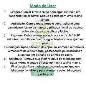 A Máscara Facial de Pepino para Pele Oleosa da Facinatus é formulada para ajudar a controlar a oleosidade, reduzir o brilho excessivo e promover uma pele mais equilibrada. Com extrato de pepino, conhecido por suas propriedades adstringentes e refrescantes, esta máscara ajuda a limpar os poros profundamente, removendo impurezas e deixando a pele com uma sensação de frescor e revitalização. Benefícios: Controla a oleosidade Reduz o brilho excessivo Limpa os poros profundamente Sensação refrescante e revitalizante Modo de Usar: Aplique uma camada uniforme da máscara sobre a pele limpa e seca, evitando a área dos olhos e lábios. Deixe agir por 15-20 minutos. Enxágue abundantemente com água morna. Utilize de 1 a 2 vezes por semana, conforme necessário, para melhores resultados.