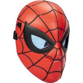 A máscara de brinquedo do Homem-Aranha possui lentes azuis que acendem deslizando a alavanca na lateral da máscara A máscara também apresenta design e decoração clássicos inspirados na Marvel e uma alça traseira ajustável para caber confortavelmente na maioria dos meninos e meninas com 5 anos ou mais