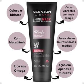 Keraton Shine Mask é uma máscara matizadora hidratante intensificadora da cor, indicada para ser aplicada entre uma coloração e outra ou sempre que seus cabelos perderem a cor e o brilho. Keraton Shine Mask realça e intensifica a coloração dos cabelos, dando mais vitalidade e devolvendo o brilho natural, de forma extremamente suave e sem agredir as fibras. Ideal para todos os tipos de cabelos. . Prova de Toque: Aplique uma pequena quantidade do produto no antebraço dou atrás da orelha. Deixe agir por 15 minutos e lave. Se em 48 horas surgir irritação na pele, coceira ou ardor no local e ou proximidades, não utilize o produto. . Teste de Mecha: Sempre faça o teste de mecha antes de aplicar o produto por todo o cabelo. . Modo de Uso: Lave os cabelos e retire o excesso de água com uma toalha, coloque luvas, aplique o produto por toda a cabeça de maneira uniforme e massageie suavemente. Aguarde 3 a 5 minutos de acordo com a intensidade desejada e enxágue bem até eliminar o excesso do produto. Nas cores matizadoras claras Sempre faça o Teste de Mecha antes de aplicar por todo o cabelo. Para determinar o tempo de pausa necessário para atingir a neutralização da cor desejada. Obs: sempre que necessário pode ser utilizado após o shampoo no lugar do condicionador como manutenção da cor. . Atenção: Por se tratar de uma máscara tonalizante por deposição, o produto poderá soltar pigmentos nas primeiras lavagens. A cor natural e a porosidade de seus cabelos pode influir no resultado final da aplicação. Keraton Shine Mask não clareia os cabelos, não cobre fios brancos, dependendo da porosidade dos mesmos, ele pode dar um suave reflexo nos fios brancos. Mantenha fora do alcance das crianças. Marca: Não Informado Ean: 7896380660667