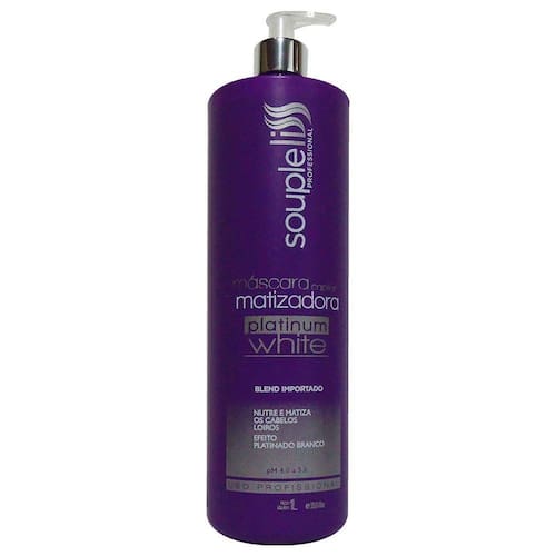 A Máscara Matizadora Platinum White Souple Liss, foi desenvolvida especialmente para matizar cabelos pré-descoloridos neutralizando tons indesejados deixando um efeito platinado, também pode ser usado como desamarelador de loiros desbotados, grisalhos e brancos.