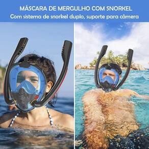 O snorkel duplo permite a respiração natural na superfície sendo perfeito para mergulhos leves, observação marinha e treinos de respiração.