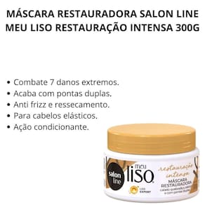 A Máscara Restauradora Meu Liso Restauração Intensa contém fórmula poderosa para combater 7 danos extremos dos cabelos lisos ou alisados: cabelos fragilizados, fios com pontas duplas, ressecamento, frizz, elasticidade, quebra e opacidade!Ação condicionante.