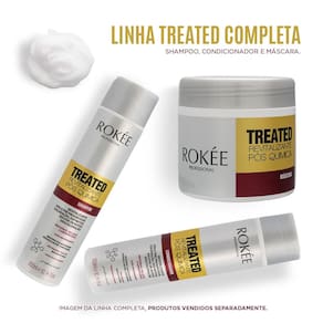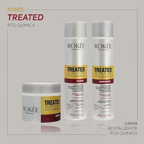 Aplique oMáscara Treated Revitalizante Pós Quimíca ROKÉE, sobre os cabelos lavados e úmidos, deixe agir por 5 minutos. Retire.