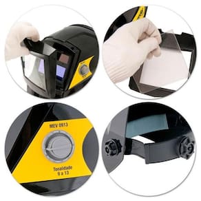 Oferece mais tecnologia, praticidade e segurança nos trabalhos com solda, sendo uma referência em inovação. Dispensa a troca de lentes durante o processo de solda e ajusta-se à capacidade visual de cada operador através do botão de ajuste de tonalidade, que varia de 9 a 13.
