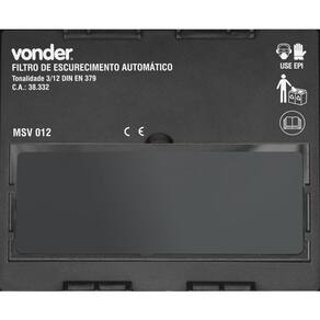 Indicada para proteção facial contra raios ultravioleta (UV) e infravermelhos (Din12), impactos de partículas volantes e respingos de soldaOferece mais tecnologia, praticidade e segurança nos trabalhos com solda, sendo uma referência em inovação. Alimentação por bateria de lítio/células solares. Tonalidade no estado claro: 3. Área de visão: 98 mm x 35 mm. Dimensões do filtro: 109 mm x 89 mm x 8 mm.Certificados:38332Número do Certificado de Aprovação - CA: 38332Detalhes Técnicos:Ajuste de tonalidade da máscara de solda:Fixo - Tonalidade 12Material da máscara para solda:PolipropilenoTipo de visor da máscara para solda:Automático de cristal líquidoPrazo de garantia:6 meses