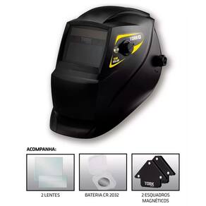 Mascara De Solda Tork 2 Esquadros 2 Lentes 1 Bateria Kab Solar Tecnologia e conforto, comandos internos que permitem realizar soldas especiais, nível de performance avançado.