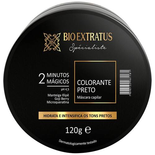 A Máscara Colorante Bio Extratus 2 Minutos Mágicos Preto é ideal para intensificar a cor dos cabelos de forma rápida e pratica, sua fórmula com pigmentos de alta qualidade, proporcionam tons intensos e duradouros, prolongando o efeito da coloração.