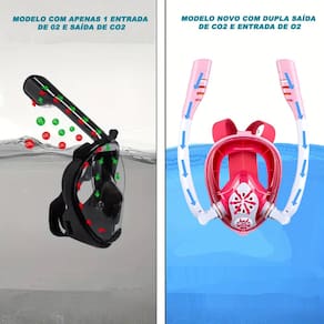 Mascara Subaquática de de Mergulho Gold Sports Full Face Maui Double Snorkel fazer você respirar mais suave em comparação com tubo único snorkel. Alimentando a circulação de ar fresco pela boca e nariz juntos, canais de ar para maximizar o fluxo de ar e garantir que a máscara permaneça livre de névoa, também impede que a água salgada entre na boca e evita engasgos.