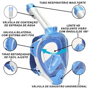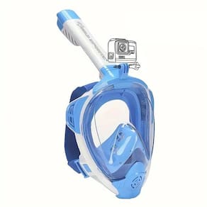 Nossa Mascara Subaquática de de Mergulho Gold Sports Sea Full Face Com Snorkel é muito mais longo do que a versão antiga, por isso é mais fácil de desmontar e respiração mais suave.Nosso suporte de câmera de máscara de snorkel é ajustável e móvel, você pode liberar para ajustar a altura. Enquanto o suporte da câmera da versão antiga é corrigido lá. A máscara de mergulho é feita de silicone líquido, é ambientalmente correta e anti-alérgica. Enquanto antes versão é feita de silicone normal. Nossa máscara quando você mergulha a válvula fecha automaticamente sem deixar entrar a água. Respirando naturalmente, a máscara de snorkel facial é muito mais fácil de usar do que a tradicional com o tubo respiratório com dupla entrada e 2 bolas de vedação quando submersa. Sua lente panoramica posui uma area de  de 180 graus de visulaização. A Máscara full face snorkel deixá-lo tirar mais proveito de suas aventuras subaquáticas. Headband ajustável do tecido elástico, fácil de usar e adequado para todos os tipos de forma da cabeça. Mais fácil do que nunca respirar confortavelmente pela boca ou nariz enquanto você está mergulhando Design de fluxo de ar duplo, respirando mais suavemente, qualquer pessoa que não queira respirar suavemente ao mergulhar. Possui um novo sistema de dupla válvulas bilaterais e unidirecional de exalar co2 tornando sua lente anti-embaçante.