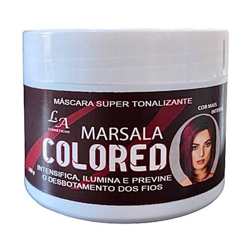 Máscara tonalizante marsala colored 300g l&a Máscara tonalizante hair mask colored marsala, é um ativador de tons vermelhos escuros. Foi desenvolvido para reativar a cor e o brilho dos cabelos vermelhor escuros, hidratando, nutrindo dos fios, deixando-os lindos e saudáveis, mantendo o tom vermelho por muito mais tempo. Por não ter peróxido nem amonia, não agride os fios.