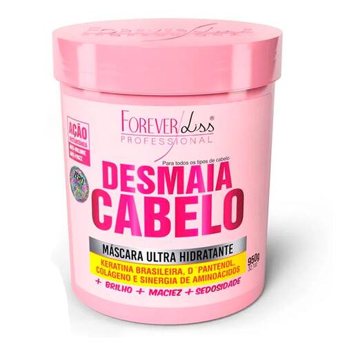 A Máscara Ultra Hidratante Desmaia Cabelo Forever Liss foi desenvolvida para proporcionar aos seus cabelos redução de volume e frizz, ao mesmo tempo em que hidrata também proporciona brilho. Sua fórmula exclusiva contém ativos como Queratina brasileira, D ’pantenol, colágeno e Sinergia de Aminoácidos que nutrem os cabelos e promovem hidratação e reconstrução profunda. Como resultado, seus fios ficarão mais alinhados, brilhantes e com aspecto mais saudável. Além disso, o uso deste produto deixará seus cabelos mais leves e sedosos, o que resulta em um aspecto mais liso. A Máscara Desmaia cabelo Forever Liss se encaixa na etapa de hidro-reconstrução no cronograma capilar.