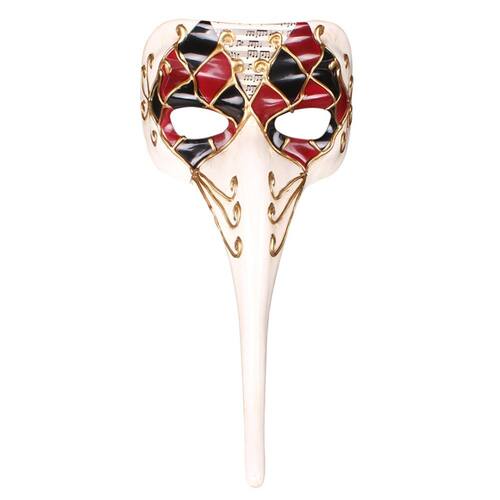 Material: PVC Tamanho: 17x32cm Peso: 88gMaterial: PVC Tamanho: 17x32cm Peso: 88gDesign requintado Esta máscara veneziana de nariz comprido apresenta um impressionante padrão de arlequim vermelho e preto, acentuado com notas musicais e detalhes dourados para um efeito dramático. Construção em PVC premium Feita com material de PVC durável, esta máscara é leve e resistente, garantindo conforto por longas horas de uso durante eventos. Ajuste perfeito Equipada com uma fita ajustável, esta máscara se encaixa confortavelmente na maioria dos tamanhos de cabeça, oferecendo um ajuste seguro e confortável para homens e mulheres. Ideal para festas temáticas. Seja para Halloween, bailes de máscaras, festas de carnaval ou cosplay, essa máscara adiciona elegância e mistério a qualquer ocasião. Apelo unissex. Projetada para homens e mulheres, esta máscara é um acessório de fantasia versátil, perfeito para realçar qualquer roupa de bufão ou com tema veneziano.
