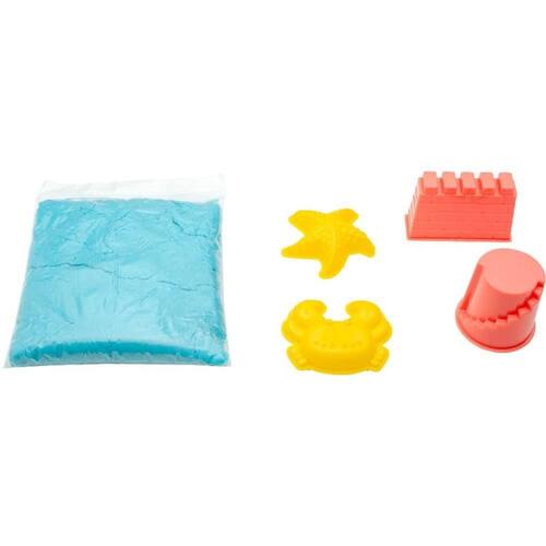 Acompanha 300g de areia na cor azul + 4 acessórios com tema fundo do mar