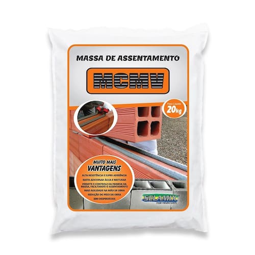 Características A Massa de Assentamento MCMV foi desenvolvida para assentamento de tijolos e blocos, reduzindo o custo de aplicação e o peso da obra, obtendo maior rapidez na execução, sem desperdícios e sujeira. A Massa de Assentamento MCMV é um produto cimentício, inodoro, não tóxico, apresentado na cor cinza, com ótima aderência, boa trabalhabilidade, resistente à alcalinidade, conferindo-lhe excelente durabilidade.