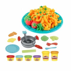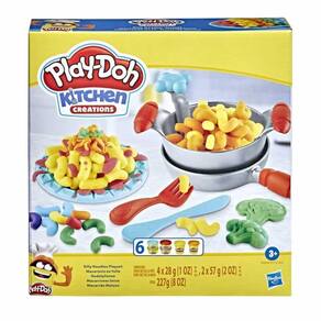 Massa de Modelar - Play-Doh Kitchen Creations - Macarrão Maluco - Hasbro: Imagine criar um monte de macarrão Play-Doh para brincar de restaurante? O brinquedo possui uma fábrica de macarrão Play-Doh que espreme o macarrão e depois o corta quando você gira a manivela. Adicione alguns ingredientes extras com formas divertidas de brócolis e outros alimentos. Com 6 potes de massinha Play-Doh não tóxica. Tudo para estimular a imaginação e a criatividade das crianças! • Detalhes: - Inúmeros acessórios - 6 potes coloridos para brincar - Inspirado em alimentos de verdade - Ampla variedade de combinações de cores - 227 gramas de massinha de modelar Play-Doh no total - As crianças podem inventar incríveis brincadeiras no mundo da gastronomia INFORMAÇÕES: • Produto: Massinha de Modelar Macarrão Maluco Play-Doh • Marca: Hasbro • Coleção: Play-Doh Kitchen Creations • Tipo: Conjunto Massinha de Modelar • Categoria: Artes e Atividades / Massinha de Modelar • Quantidade: 227g de massinha • Conteúdo: 06 potinhos e 09 acessórios • Recomendação: para crianças a partir de 03 anos de idade ESPECIFICAÇÕES: • Referência: E9369 / E5112 • Código de Barras: 195166168647 • Embalagem (C x A x L): 22.9 x 22.9 x 06 cm • Embalagem (Peso): 0.567 kg • Material / Composição: Água, farinha de trigo, cloreto de sódio, cloreto de cálcio, amido de milho, óleo mineral, estearato de PEG-50, sulfato de alumínio, benzoato de sódio, fragrância e colorante • Produto atóxico em conformidade com: ASTM D-4236 • Registro: 002709/2021 • Certificado: Órgãos Autorizados - OCP´S (Organismos de Certificação de Produtos) BENEFÍCIOS DE BRINCAR: - Eleva a autoestima - Exercita a memória - Estimula o raciocínio - Exercita o imaginário - Desenvolve a criatividade - Desenvolve percepção visual - Desperta a atenção e curiosidade - Desenvolvimento neuropsicológico - Estimula habilidades motoras básicas - Incentiva a comunicação e linguagem - Desenvolve aspectos emocionais e afetivo - Estimula o reconhecimento de formas e cores AVISO: - As imagens são meramente ilustrativas - Os tamanhos e medidas são aproximados - As cores e estampas dos produtos podem ter variações - As informações são de responsabilidade do fabricante ou fornecedor