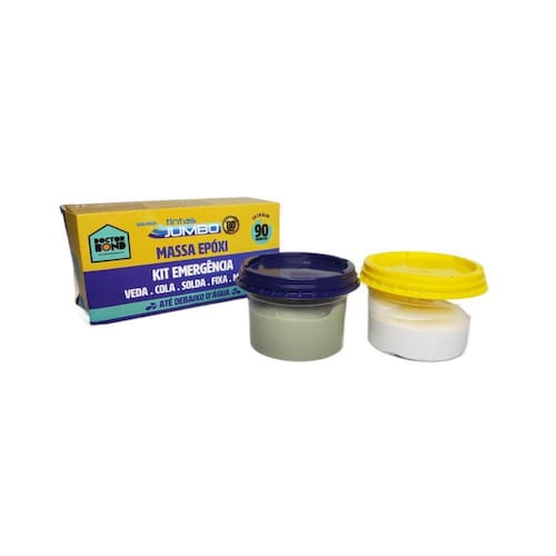 Secagem Ultra Rápida + Alta Resistência + À prova dágua (250g)Para reparos em áreas secas ou submersas, independente do tipo de superfície, a Massa Epóxi Jumbo DoctorBond vai facilitar seu trabalho pela sua alta eficácia e fácil manuseio. Ótima para piscinas, rejuntes, cerâmicas, PVC etc. Qualquer emergência, cole com a Massa Epóxi DoctorBondEspecificações Técnicas:Peso: 250gDimensões da Embalagem: 5.5cm x 16cm x 8 cmRendimento: 7,5 Kg/mÀ prova dáguaFicou com alguma dúvidaEnvie-nos uma pergunta abaixo, temos uma equipe especializada para atender você.Esse é um anúncio do Grupo T-Gift Store.Somos uma empresa empenhada em proporcionar momentos de bem-estar e lazer. Trabalhamos com qualidade, responsabilidade e somente o melhor em artigos para toda a família e amigos.Presenteie com a T-Gift