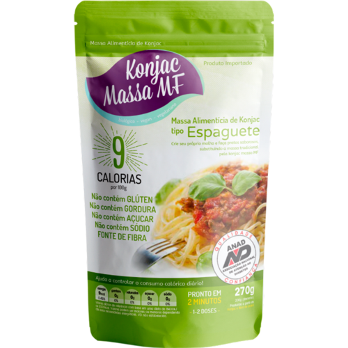 A Massa Konjac Tipo Espaguete é um produto 100% feito da farinha do glucomannan (Konjac), contendo apenas 9 kcal a cada 100g, 0g de carboidratos.