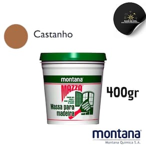 Massa Mazza para Retocar e Nivelar Madeira Montana 400g Castanho Massa Mazza para Retocar Nivelar Madeira Montana 400g CastanhoRenove suas peças de madeira com praticidade e eficiênciaA Massa Mazza da Montana é a solução ideal para corrigir, retocar e nivelar pequenas trincas e rachaduras superficiais em móveis antigos, esquadrias de madeira e demais peças que necessitam de restauração. Com fácil aplicação e excelente aderência, esta massa acrílica à base de água proporciona um acabamento de qualidade, permitindo a renovação de suas superfícies de forma prática, rápida e ecológica. Diferenciais:fácil de lixar, garantindo um acabamento impecável.Secagem rápida, agilizando o processo de restauração.Solúvel em água, facilitando a limpeza de ferramentas.Baixo odor e livre de vapores tóxicos, tornando o ambiente mais saudável. Funcionalidades e Dicas de Uso:Para melhores resultados, recomenda-se aplicar a Massa Mazza utilizando uma espátula ou desempenadeira, visando uma distribuição uniforme. É importante utilizar equipamentos de segurança, como óculos, máscaras e luvas, para proteção durante a aplicação. Ideal para vedar assoalhos, corrigir trincas e preparar superfícies de madeira para pintura, garantindo durabilidade e alta qualidade nos resultados. Ficha Técnica:Marca: MontanaPeso: 400gCor: CastanhoTempo de Secagem: Até 6 horasComposição: Base águaCategoria: Acabamento MadeiraAproveite a praticidade e eficiência da Massa Mazza para Retocar Nivelar Madeira Montana 400g Castanho e traga vida nova aos seus móveis e peças de madeira, com um acabamento impecável e duradouro. Surpreenda-se com os resultados e renove seus ambientes de forma simples e eficaz. Marca: Não Informado