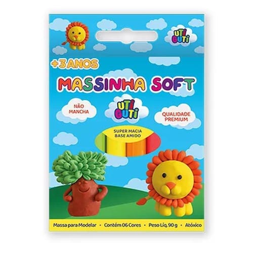Massa Para Modelar 90g Com 6 Cores Uti Guti A massa para modelar Uti Guti possui formulação atóxica e extra macia, tornando-a ideal para modelar. Cores vivas, brilhantes e visíveis, despertam o interesse da criança para o estudo das cores.