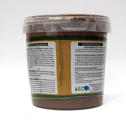 Massa acrílica para madeira ou assoalho- massa acrílica especial para rejuntar e calafetar assoalhos, madeiras maciças ou laminadas e mdf. Produto de fácil aplicação e perfeito acabamento, destiná-se à correção de imperfeições e no preparo de superfícies de madeira para receber pinturas, vernizes, ceras, etc.- sua aplicação faz se normalmente com espátulas ou desempenadeiras de aço.- produto a base de resina acrílicas e metalizadas, pigmentos e/ou cargas minerais, agentes estabilizantes / espessantes e água produto a base de água - monocomponente. Marca: Não Informado