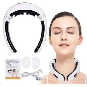 O massageador para coluna cervical contém 2 eletrodos, que promove a circulação sanguínea, usando baixa frequência de eletroterapia, terapia magnética infravermelho, massagem térmica e vibração, relaxa os músculos para diminuir a inflamação, o inchaço e aliviar a dor.