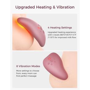 - Sua solução de fluxo de leite: com 8 modos de vibração e 4 níveis de aquecimento (36.7 °C/40.6 °C/45.0 °C/47.8 °C), este dispositivo oferece um total de dez modos de cuidado para você escolher. Selecione a configuração que melhor se adapta às suas necessidades para limpar eficazmente os dutos entupidos, eliminar nódulos mamários e aumentar a produção de leite — enquanto diz adeus ao ingurgitamento dos seios!