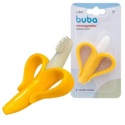 O Massageador de Gengiva em forma de banana da Buba, fabricado em silicone, é macio, leve e fácil de segurar. O formato da banana também possui cor viva e divertida, além de entreter o bebê.