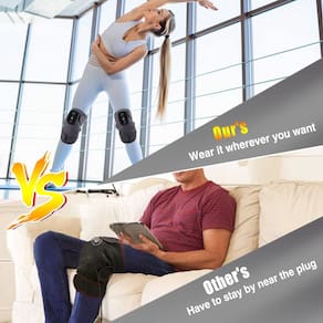 - Almofada de aquecimento 3 em 1 com vibração: não é apenas uma joelheira aquecida, mas também funciona para ombros, cotovelos, braços, coxas, panturrilhas ou tornozelos. Temos tiras extras para usá-lo em outras partes do corpo, uma longa e outra curta, que permitem que o massageador seja utilizado em quase qualquer parte do corpo.