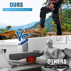 - Massageador de joelho sem fio: construído com bateria recarregável de 5000 mAh, o massageador de joelho aquecido é completamente portátil e você pode usá-lo sem ser amarrado por um fio. Você pode facilmente colocá-los onde quer que esteja dolorido e continuar fazendo o que quer que você esteja fazendo sem atrapalhar ou cair.