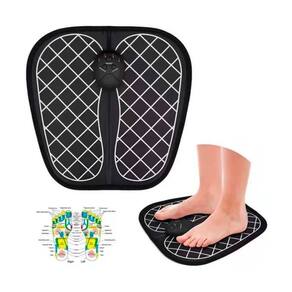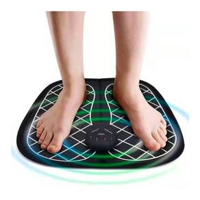 Nome do item: massageador de pés\ nemCor: pretoAlimentação: 2 pilhas AAA (não incluídas)\ n\ nCaracterísticas: facilita a circulação sanguínea e relaxa os pés\ n\ nTapete de ioga macio e confortável\ nImpressão em circuito de íons de prata que não agride a pele\ nUnidade principal separada. O tapete pode ser limpo com um pano úmido. O tapete é feito de material PU flexível e macio e sua durabilidade é excepcional. E por usar material condutor de alta qualidade, o tapete é dobrável e portátil.
