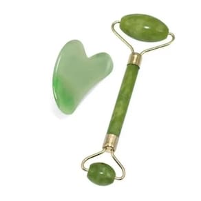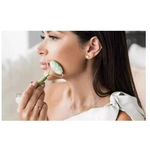 Rodillo Piedra Jade Masajeador Linfático RejuvenecimientoComo su nombre lo dice es un aparato que tiene un rodillo (como una specie de sullero que gira) hecho de la piedra jade. Es un utensilio milenario, ya que las mujeres chinas lo usaban en sus rituales de belleza desde al menos el siglo VI.Se usa en la piel del rostro y se relaciona con el masaje linfático. El rodillo de jade tendría los beneficios de reduzir la hinchazón, melhorar a circulação e favorecer a elasticidade do rosto. El jade además ayudaría a cerrar los poros, eliminar toxinas y oxigenar la pele.Existen distintas recomendaciones. Alguns dizem que basta usá-lo na pele limpa e seca. Outros recomendam usar um sérum para que o rolo de jade ajude na absorção do produto e se deslice melhor.