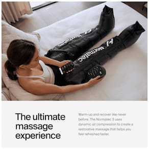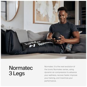 O Normatec 3 usa compressão de ar dinâmica para criar uma massagem restauradora que ajuda você a se sentir revigorado mais rápido. As pernas Normatec estão disponíveis apenas em Standard na Amazon.