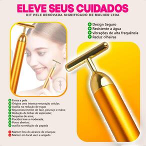 Características Técnicas: - Frequência: 10.000 vibrações por minuto - Material: Cobre folheado a ouro 24k - Dimensões: 14,3cm x 1,6cm - Peso: 60g (leve e ergonômico) - Tempo de uso recomendado: 3 minutos diários