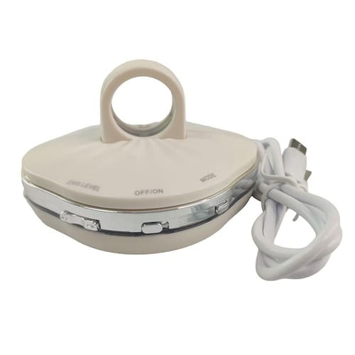 Ao ligar a luz indicadora fica verde. A tecla MODE do lado direito, modo de vibração no iro clique. No segundo clique modo de aquecimento de vibração contínua. Terceiro clique modo EMS + corrente.
