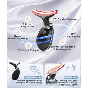 ELISHINE Massageador facial multifuncional à base de luz, massageador facial portátil de 7 cores para cuidados com a pele, preto brilhante