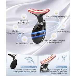 ELISHINE Massageador facial multifuncional à base de luz, massageador facial portátil de 7 cores para cuidados com a pele, preto brilhante - Dispositivo Trinity Beauty: é um dispositivo portátil de venda livre destinado ao uso no tratamento de rugas de rosto inteiro com modos de 7 cores e térmico e vibração - Conteúdo da embalagem: massageador de rosto e pescoço * 1, cabo USB-C * 1, manual * 1 - Como usar: recomenda-se usá-lo uma ou duas vezes por dia por cinco a dez minutos cada. Limpe o rosto e aplique alguns produtos para a pele antes de usar. Remova a tampa, pressione o botão para ligar e selecione o modo que você precisa - Esta ferramenta de massagem facial é adequada para todos os tipos de pele, o que a torna um presente decente para qualquer ocasião, como Dia das Mães, Dia dos Pais, Dia dos Namorados, aniversário, Natal, etc. E é leve e portátil, fácil de transportar e você pode usá-lo em qualquer lugar - Estamos sempre aqui para ajudar. com você dentro de 24 horas se você tiver algum problema