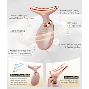ELISHINE Massageador facial à base de luz - Massageador facial portátil de 7 cores para cuidados com a pele, ouro rosa - Conteúdo da embalagem: massageador de rosto e pescoço * 1, cabo USB-C * 1, manual * 1 - Como usar: recomenda-se usá-lo uma ou duas vezes por dia por cinco a dez minutos cada. Limpe o rosto e aplique alguns produtos para a pele antes de usar. Remova a tampa, pressione o botão para ligar e selecione o modo que você precisa - Esta ferramenta massageador facial é bem embalada e adequada para todos os tipos de pele, o que a torna um presente decente para qualquer ocasião, como Dia das Mães, Dia dos Pais, aniversário, Natal, etc. - Este massageador de rosto e pescoço é portátil e leve, fácil de transportar para que você possa usá-lo em qualquer lugar - Estamos sempre aqui para ajudar. com você dentro de 24 horas se você tiver algum problema