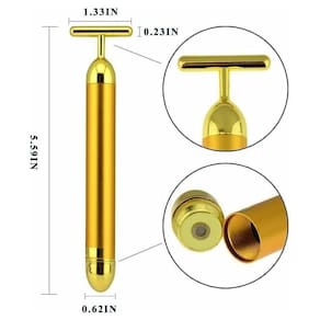 Estamos encantados de apresentar nosso incrível Beauty Bar para cara, uma ferramenta de beleza revolucionária com características excepcionais.O Beauty Bar é projetado com um lindo rolo T de massagem facial que o ajudará a aumentar a circulação e o fluxo sanguíneo em seu rosto. Isso não só lhe proporcionará uma sensação de relaxamento e reduzirá a tensão, pois também rejuvenecerá sua pele, conferindo-lhe um aspecto radiante e saudável. Além disso, sua massagem profunda e suave oferecerá uma experiência única de cuidado facial.A barra de beleza de 24K é especialmente eficaz para remover as bolsas abaixo dos olhos e reduzir as rugas ao redor dos olhos, lábios, frente e pele. Notarás una transformación visible en tu apariencia, ya que tu piel lucirá más tersa, rejuvenecida y radiante.Con nuestro Beauty Bar, podrás obtener resultados dramáticos de belleza que harán que tu piel brille. Ya sea que desees iluminar tu cutis o darle un impulso extra a tu rutina de cuidado facial, este producto es perfecto para ti.Además, al utilizar el masaje facial diariamente, notarás cómo tu rostro y tu piel se vuelven cada vez más hermosos. Esta rotina simples e eficaz se convertirá em um momento de autocuidado que te ayudará a mantener una apariencia fresca y juvenil.No esperes más para probar nuestra Beauty Bar y disfrutar de todos los beneficios que ofrece. Ilumine uma pele linda e radiante! LA COMPRA SE COMPONE DE: 1 Masajeador Facial Eléctrico Antiarrugas, rejuvenescido ou Características gerais: Cor: Dourado. Material: plástico, metal e eletrónica.MEDIDAS Y PESO APROXIMADO DO PRODUTO: Alto: 3 cm Aprox.Largura: 8 cm Aprox Largo: 2 cm Aprox Peso: 191 g
