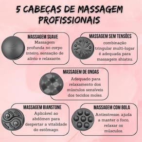 Com ponteiras de fácil substituição, a versatilidade deste aparelho de massagem se destaca. Personalize sua experiência de massagem, direcionando o alívio exatamente onde você mais precisa. Seja após um dia cansativo de trabalho ou para relaxar os músculos pós-treino, este aparelho é a solução ideal.