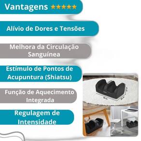 shiatsu de pés aquecido e bivolt Descrição do anúncio: Presenteie-se com uma boa massagem todos os dias com o de pés/perdas/panturrilha. Especialmente projetado para relaxar os pés após um longo dia, este dispositivo possui um design anatômico que oferece conforto tanto nos pés quanto nas pernas. Equipado com internas para proporcionar relaxamento, possui cavidades laterais que garantem conforto durante o uso. Com dispositivo de proteção contra superaquecimento e desligamento automático após 15 minutos, é seguro e eficaz para uso diário. Conteúdo da embalagem: 1x de pés elétrico 1x fonte de alimentação 1x manual de instrução Características: Design anatômico para uso nos pés, pernas e panturrilhas. internas para proporcionar relaxamento. Cavidade nas laterais para conforto durante o uso. Dispositivo de proteção contra superaquecimento com desligamento automático. Material: plástico, poliéster, componentes eletrônicos. Voltagem: 110v/220v Comprimento do cabo: 125cm Dimensões aproximadas: 30cm largura x 18cm profundidade x 14cm altura x 11cm abertura para pé Peso aproximado: 980g Especificações: Modelo: de pés elétrico shiatsu Material: plástico, poliéster, componentes eletrônicos. Local de uso: pés, panturrilhas, pernas. Voltagem: 110v/220v Plugue de tomada: padrão eu Comprimento do cabo: 125cm Dimensões aproximadas: 30cm largura x 18cm profundidade x 14cm altura x 11cm abertura para pé Peso aproximado: 980g Principais perguntas sobre o produto e respostas: 1 qual a voltagem deste Este é bivolt, funcionando tanto em 110v quanto em 220v. 2 quais partes do corpo podem ser massageadas com este dispositivo Ele é projetado para massagear pés, panturrilhas e pernas. 3 é seguro deixar o ligado por um período prolongadoRecomenda-se o uso contínuo por até 15 minutos com intervalos entre as sessões para melhor eficácia e segurança. 4 este vem com Sim, oferecemos de 30 dias para este produto. Marca: Não Informado Ean: 7896036213117