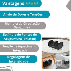shiatsu elétrico de pés com aquecimento Descrição do anúncio: Presenteie-se com uma boa massagem todos os dias com o de pés/perdas/panturrilha. Especialmente projetado para relaxar os pés após um longo dia, este dispositivo possui um design anatômico que oferece conforto tanto nos pés quanto nas pernas. Equipado com internas para proporcionar relaxamento, possui cavidades laterais que garantem conforto durante o uso. Com dispositivo de proteção contra superaquecimento e desligamento automático após 15 minutos, é seguro e eficaz para uso diário. Conteúdo da embalagem: 1x de pés elétrico 1x fonte de alimentação 1x manual de instrução Características: Design anatômico para uso nos pés, pernas e panturrilhas. internas para proporcionar relaxamento. Cavidade nas laterais para conforto durante o uso. Dispositivo de proteção contra superaquecimento com desligamento automático. Material: plástico, poliéster, componentes eletrônicos. Voltagem: 110v/220v Comprimento do cabo: 125cm Dimensões aproximadas: 30cm largura x 18cm profundidade x 14cm altura x 11cm abertura para pé Peso aproximado: 980g Especificações: Modelo: de pés elétrico shiatsu Material: plástico, poliéster, componentes eletrônicos. Local de uso: pés, panturrilhas, pernas. Voltagem: 110v/220v Plugue de tomada: padrão eu Comprimento do cabo: 125cm Dimensões aproximadas: 30cm largura x 18cm profundidade x 14cm altura x 11cm abertura para pé Peso aproximado: 980g Principais perguntas sobre o produto e respostas: 1 qual a voltagem deste Este é bivolt, funcionando tanto em 110v quanto em 220v. 2 quais partes do corpo podem ser massageadas com este dispositivo Ele é projetado para massagear pés, panturrilhas e pernas. 3 é seguro deixar o ligado por um período prolongadoRecomenda-se o uso contínuo por até 15 minutos com intervalos entre as sessões para melhor eficácia e segurança. 4 este vem com Sim, oferecemos de 30 dias para este produto. Marca: Não Informado Ean: 7896036213698