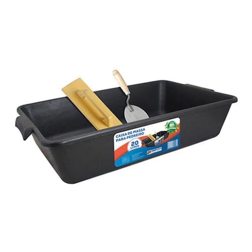 Informações adicionais: Ean: 7898280075350 Validade: indeterminada Capacidade: 20l Tamanho aproximado: 61x37x14cm Peso aproximado: 670g Tipo de produto: caixa retangular para massa de pedreiro com alça Cor: preta Composição: plastico