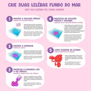 Massinha - Gelelé Leléba Gel Mágico - Fundo do Mar Rosa - Doce Brinquedo: Prepare-se para uma aventura sensorial cheia de magia, cores vibrantes e uma textura macia e gelatinosa que vai fazer as crianças pirarem de alegria! Detalhes: • As crianças criam seus próprios squishys do fundo do mar com este kit completo • Inclui 03 opções de cores de géis mágicos • As crianças em embarcam em uma jornada oceânica enquanto cria seus próprios squishys com o mágico kit de moldes • De golfinhos fofos a caranguejos coloridos, as possibilidades são infinitas Como brincar e fazer Leléba Gel Mágico?: 01) A diversão começa com a preparação da solução mágica: adicione água à bandeja até a medida indicada e despeje um sachê do pó mágico por vez. 02) Mergulhe a forminha na solução, preencha-a com o gel mágico e submerja novamente na solução mágica. Após um breve período, agite suavemente a forminha ainda na solução até que o gel se desprenda. 03) Aguarde alguns segundos para que as Lelebas estejam prontas para manuseio. 04) Para conservar as Lelebas, mantenha-as na solução mágica por 2 a 3 horas e depois armazene em água limpa. Este processo proporciona horas de entretenimento criativo e encantador, levando as crianças a um mundo subaquático de imaginação e diversão com o Gelelé Leleba Gel Mágico Fundo do Mar! Informações: • Produto: Gel Mágico Squishy Fundo do Mar • Marca: Doce Brinquedo • Coleção: Leléba Gel Mágico • Linha: Gelelé • Cores: Rosa / Violeta / Laranja • Tipo: Conjunto de Slime com Molde • Estilo de brincar: DIY - Do It Yourself • Categoria: Artes e Atividades • Subcategoria: Massinhas e Cia • Conteúdo: - 01 bandeja - 01 espátula - 02 sachês pó mágico 08 g cada - 03 frascos Gel Mágico 83 ml cada - 04 forminhas de animais marinhos • Recomendação: para crianças a partir de 03 anos de idade Especificações: • Referência: 3848 • Código de Barras: 7898723630962 • Embalagem (C x A x L): 22 x 23.5 x 4.5 cm • Embalagem (Peso): 0.496 kg • Material / Composição: água, espessantes, pigmentos, conservantes, fragrância, agente aglutinante, aditivos, polímero pp • Registro: 001835/2024 • Certificado: Órgãos Autorizados - OCP´S (Organismos de Certificação de Produtos) Aviso: • As imagens são meramente ilustrativas • Os tamanhos e medidas são aproximados • As cores e estampas dos produtos podem ter variações • As informações são de responsabilidade do fabricante ou fornecedor