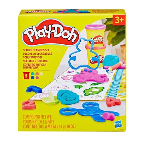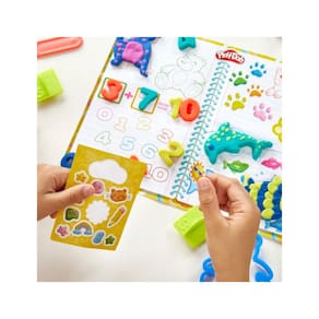 BRINCAR DE ESCOLA EM CASA: Play-Doh combina brinquedos infantis com a volta às aulas com este brinquedo de artes e artesanato para meninos e meninas TAPETE DE ATIVIDADES DUPLO E ADESIVOS: Cada lado no tapete em formato de caderno possui atividades divertidas com animais e números. As crianças podem decorá-lo com adesivos 10 CARIMBOS DE NÚMEROS: Qual o maior número que as crianças podem pensar? As crianças vão fazer os números de 0 a 9 com as ferramentas Play-Doh 5 CORTADORES: As crianças poderão fazer vários animais de Play-Doh como cães, gatos, peixes, golfinhos e ursos para muitas atividades divertidas com o tapete de atividades 5 CORES PLAY-DOH: Este kit Play-Doh inclui 2 potes de 56 g de massa de modelar nas cores azul escuro, vermelha, amarela, azul e roxa