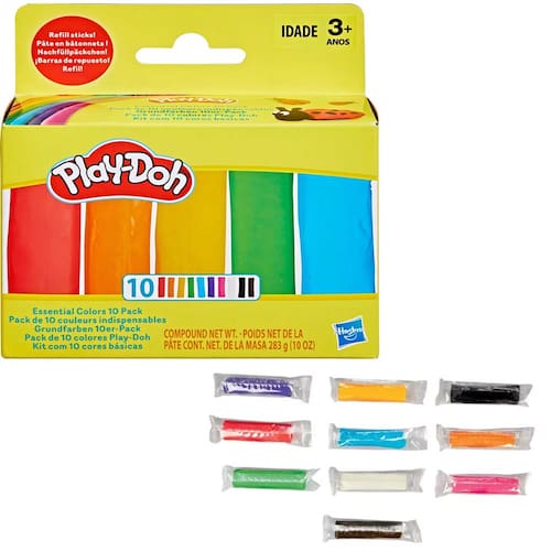 Com 10 bastões de cores clássicas e vibrantes embalados individualmente, as crianças podem imaginar muitas criações Play-Doh malucas, maravilhosas e completamente personalizadas!