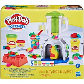 Muita diversão com o kit de cozinha Smoothies Coloridos Play-Doh! As crianças a partir dos 3 anos podem criar frutas e vegetais e depois colocar tudo no liquidificador de brinquedo para criar smoothies coloridos. E depois basta usar a imaginação para decorar! As crianças podem fazer chantilly colorido. Ou criar frutas e vegetais diferentes para enfeitar! Usar os meios-moldes e as ferramentas para criar frutas, cubos de gelo e outros ingredientes para fazer smoothies. Os kits Play-Doh são um presente ideal para meninas e meninos que adoram brinquedos criativos.