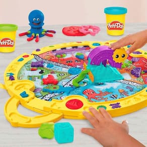 As crianças podem usar a imaginação em qualquer lugar com o Tapete de Atividades Play-Doh Starters. Esse kiti inicial vem com um tapete portátil, 19 acessórios Play-Doh e 4 cores de massa de modelar. O tapete colorido inspira muitas atividades criativas com as ferramentas divertidas que carimbam, cortam e moldam a massa de modelar Pay-Doh em diversas maneiras.