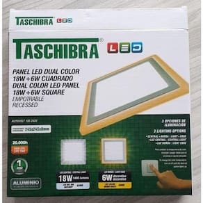 Painel Led Sobrepor Quadrado Dual Color 18w+6w 220v Taschibra Painel Led Sobrepor Quadrado Dual Color 18w Branco Frio + 6w Branco Quente 3 Modos de Funcionamento Funciona com qualquer Interruptor de Liga/Desliga Para alterar a temperatura de cor é só ligar/desligar até acender na opção desejada Opções: Só a Luz Central, Só a Luz das Bordas, e Ambas acesas